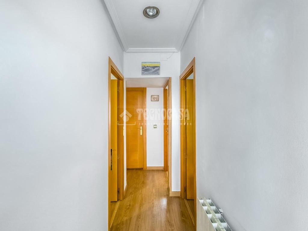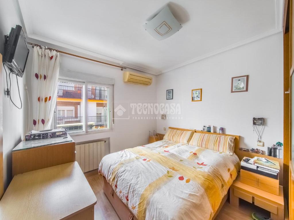 Cuenta con dos dormitorios amplios, ambos con aire acondicionado, y dispone de calefacción de gas natural. La vivienda presenta suelos de tarima y paredes lisas pintadas en blanco, en excelente estado de conservación.